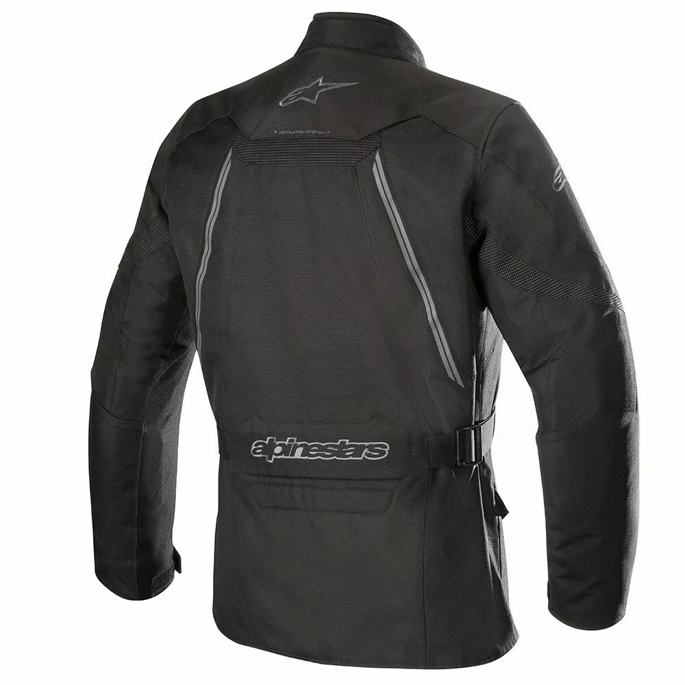• Hook and loop grip waist adjustment belt for highly customizable fit, plus hook and loop grip closure cuff and collar closures. • Optimized for use with Alpinestars textile pants offering a secure fit via an internal waist connection zipper. • Pre-contoured sleeves for improved riding performance, plus volume adjustment to ensure close fit. • External front pockets for convenient storage, including two waterproof pockets and two large pockets. Internal pockets are waterproof and zippered for peace-of-mind closure. • Integrated foam padding on back for fit and comfort. • Back ventilation exhaust is overlapped with membrane to help prevent water penetration.