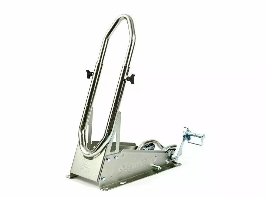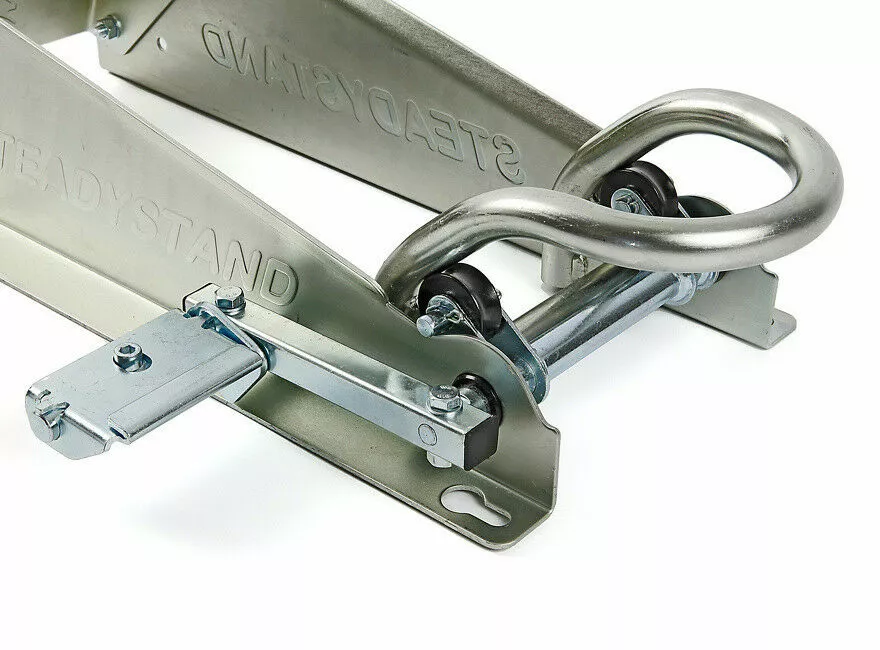 The SteadyStand Cross has a clever clamping device which will prevent your motorbike from moving or leaning over. By using the foot pedal, your front wheel can easily be anchored to the stand.This makes it unnecessary to pull down your fork and damage the seals. By using the SteadyStand Cross, you will only have to use tiedowns to secure the rear end of your motorbike. The special foot pedal can be installed on both sides of the SteadyStand Cross. The SteadyStand Cross is suitable for 18 to 21 inch wheels and tyre sizes from 90 up to 120mm.