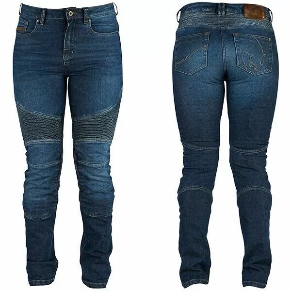The Furygan Purdey ladies jeans have been designed and equipped to provide optimum comfort and safety both on the bike and in everyday life. This unbeatable comfort was achieved in the Furygan Motion lab and the original design and modern fit mean this denim will always be your closet ally. The Purdey jeans have an Aramid fiber lining and the new close fit and specific stretchy denim ensures a comfortable perfect fit. CE apprvoed D30 prtoectors come on the knees and hips and has four outside pockets.