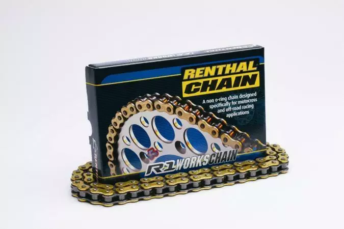 The Renthal R1 Works Chain is a non o-ring chain designed specifically for motocross and off-road racing. The R1 chain has excellent impact load resistance and is the choice for high strength, light weight and maximum power transfer.